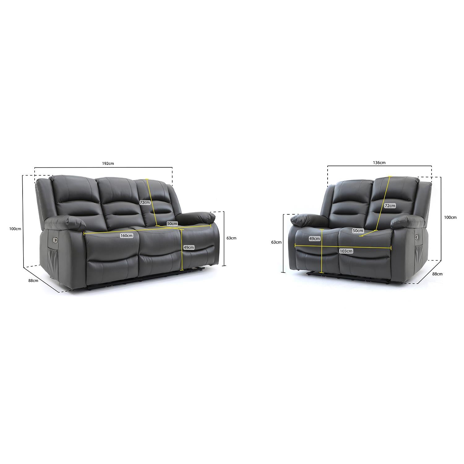 Arlo Recliner Sofa Suite – 3 Seater, 2 Seater & Armchair – Faux Leather with USB