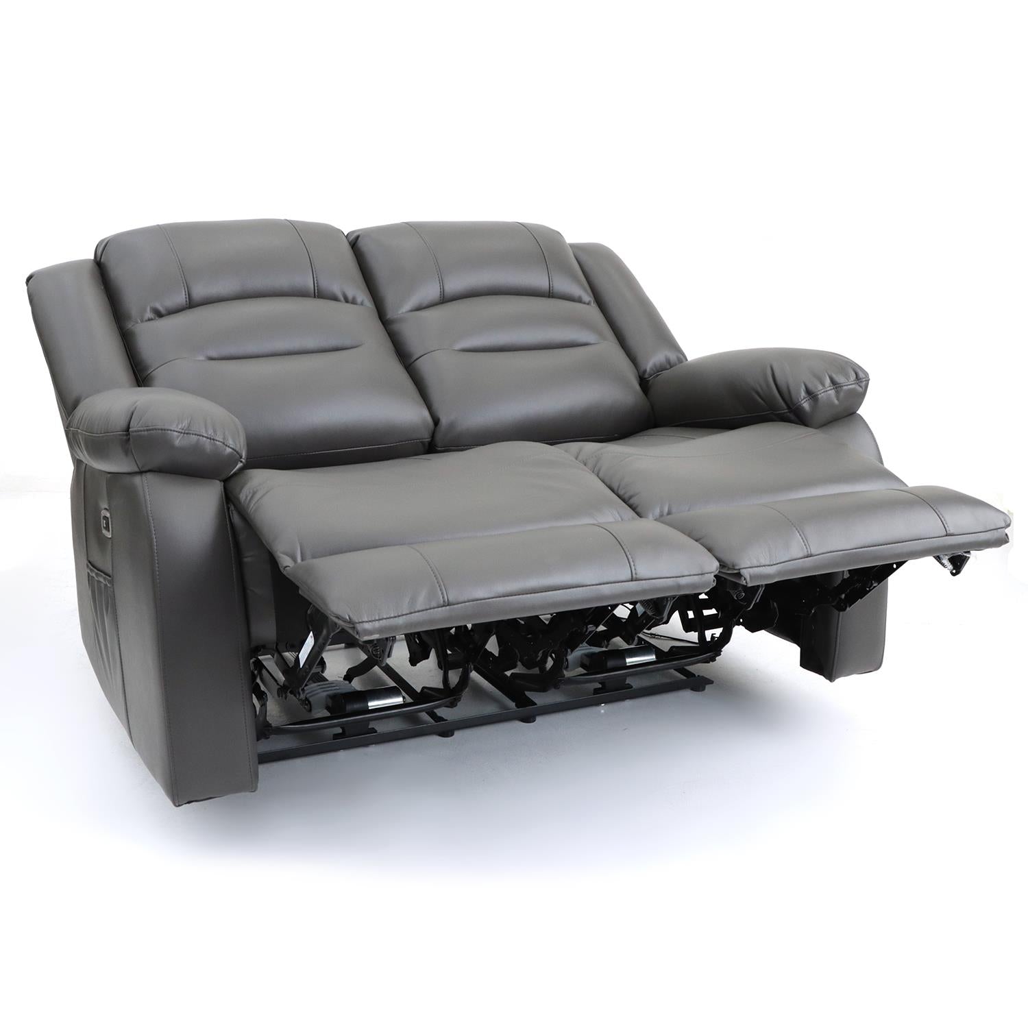 Arlo Leather Like Black or Grey 3 + 2 Electric Reclining Sofa Suite USB Charging + Drinks Tray