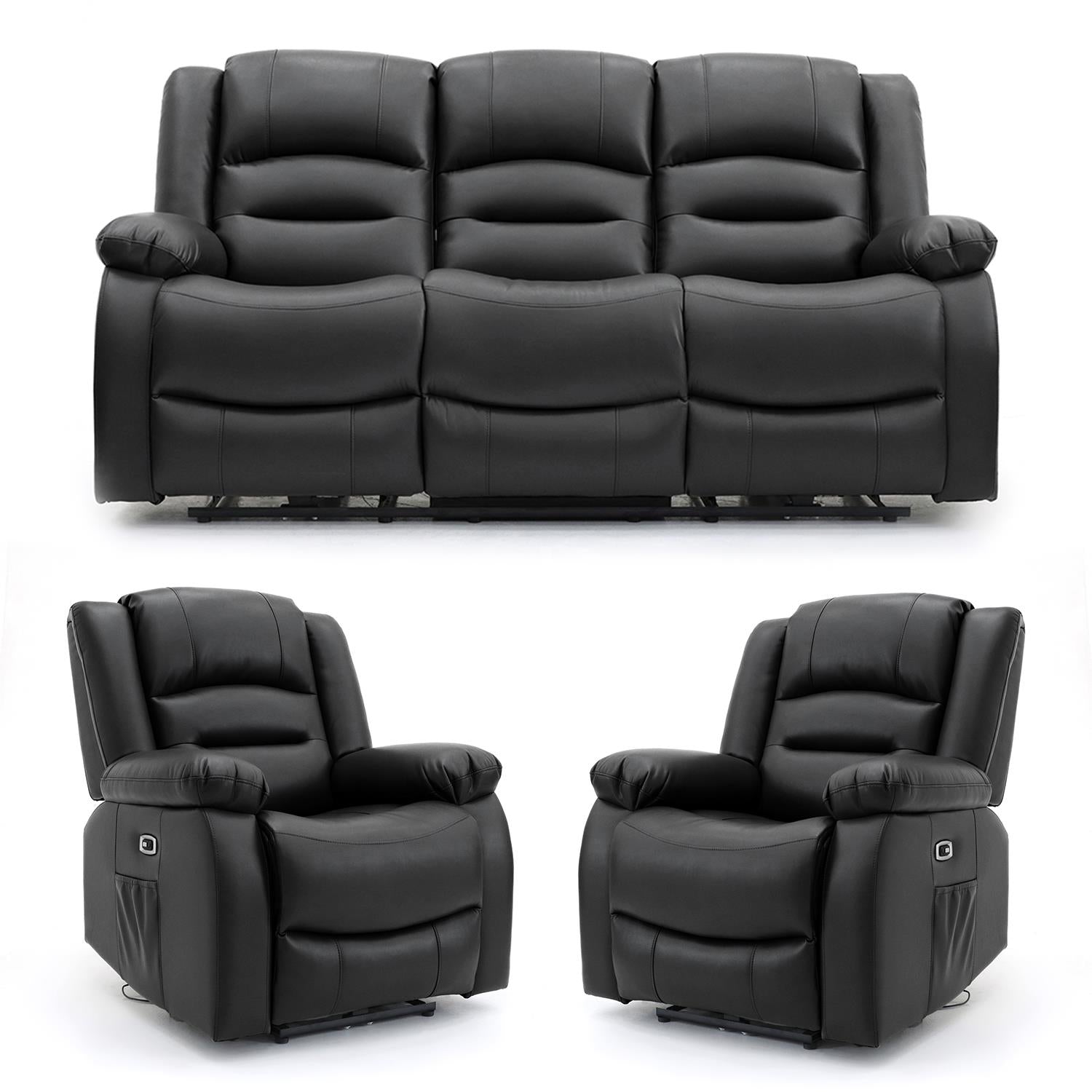 Arlo Recliner Sofa Set – 3 Seater & 2 Armchairs – Faux Leather with USB & Cup Holders