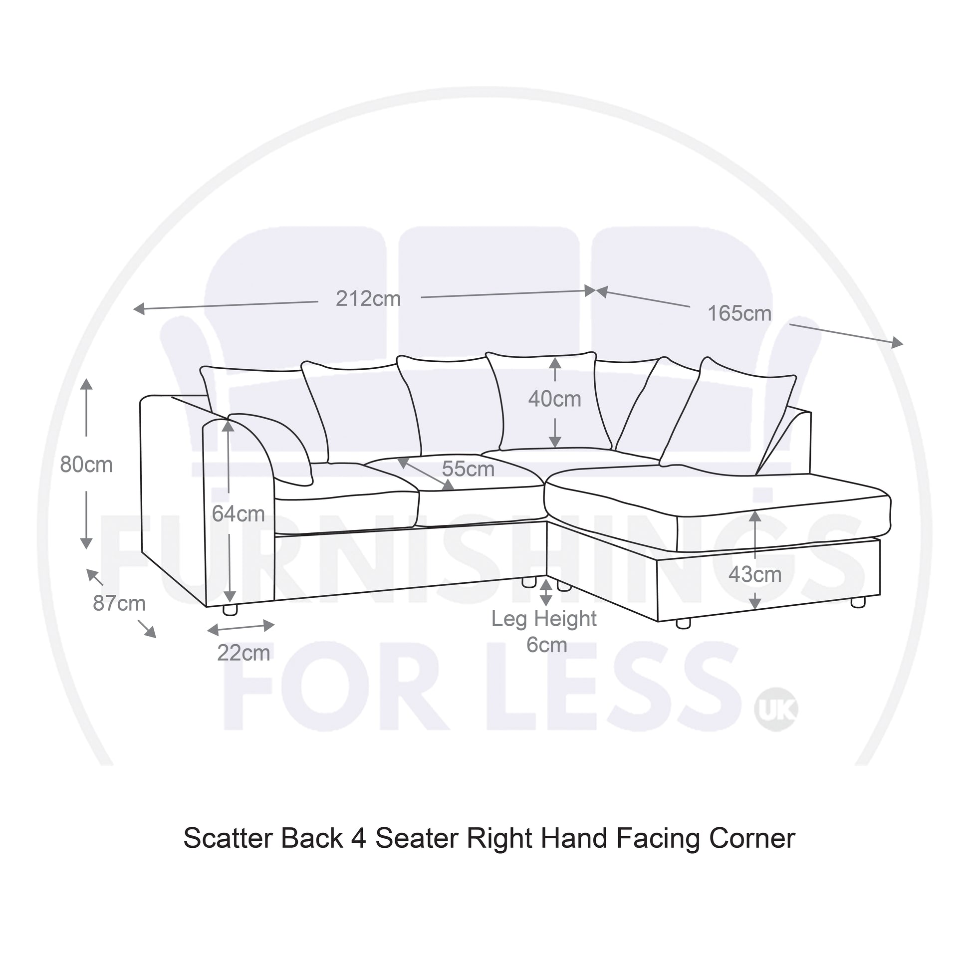 - Corner: (H) 80cm x (W) 212cm x 165cm (D) 87cm.