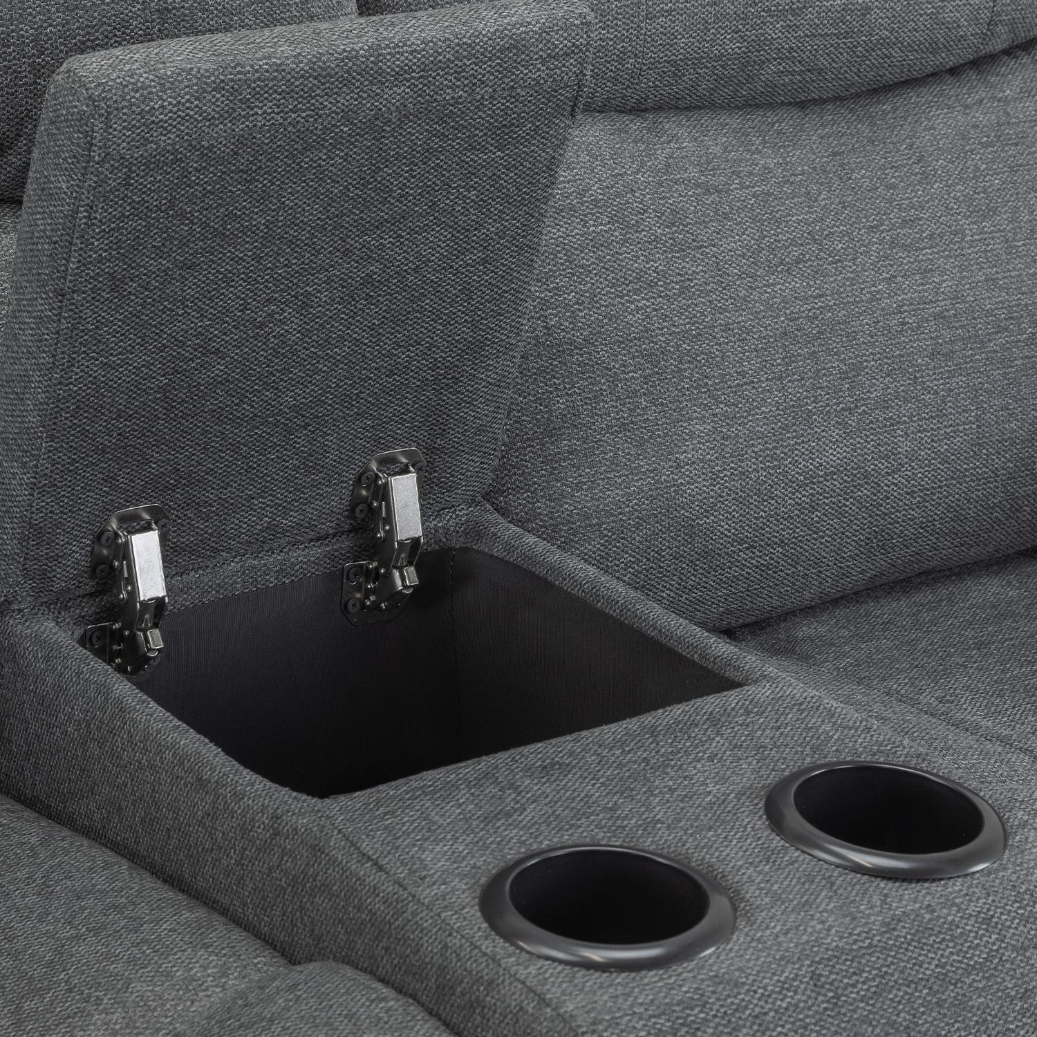 The 3 seater includes reclining end seats for personalised comfort. The 2 seater features a convenient centre console with hidden storage and integrated cup holders — ideal for drinks, remotes and essentials. The armchair also includes USB charging ports for added practicality.