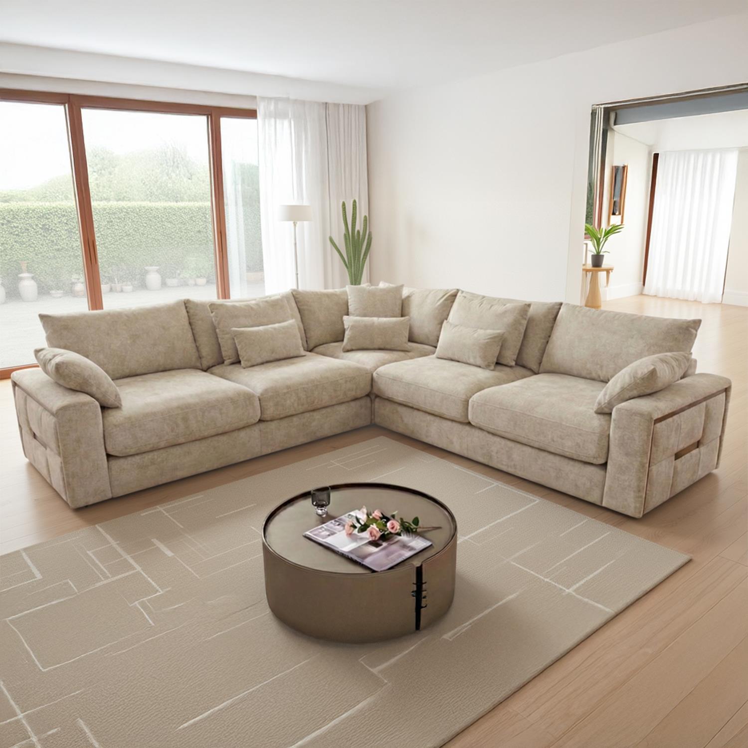The distinctive modern armrest accents give this L-shaped sofa a unique design twist, making it more than just seating—it becomes a focal point in any living space. Available in versatile beige or grey, it complements both contemporary and classic interiors.