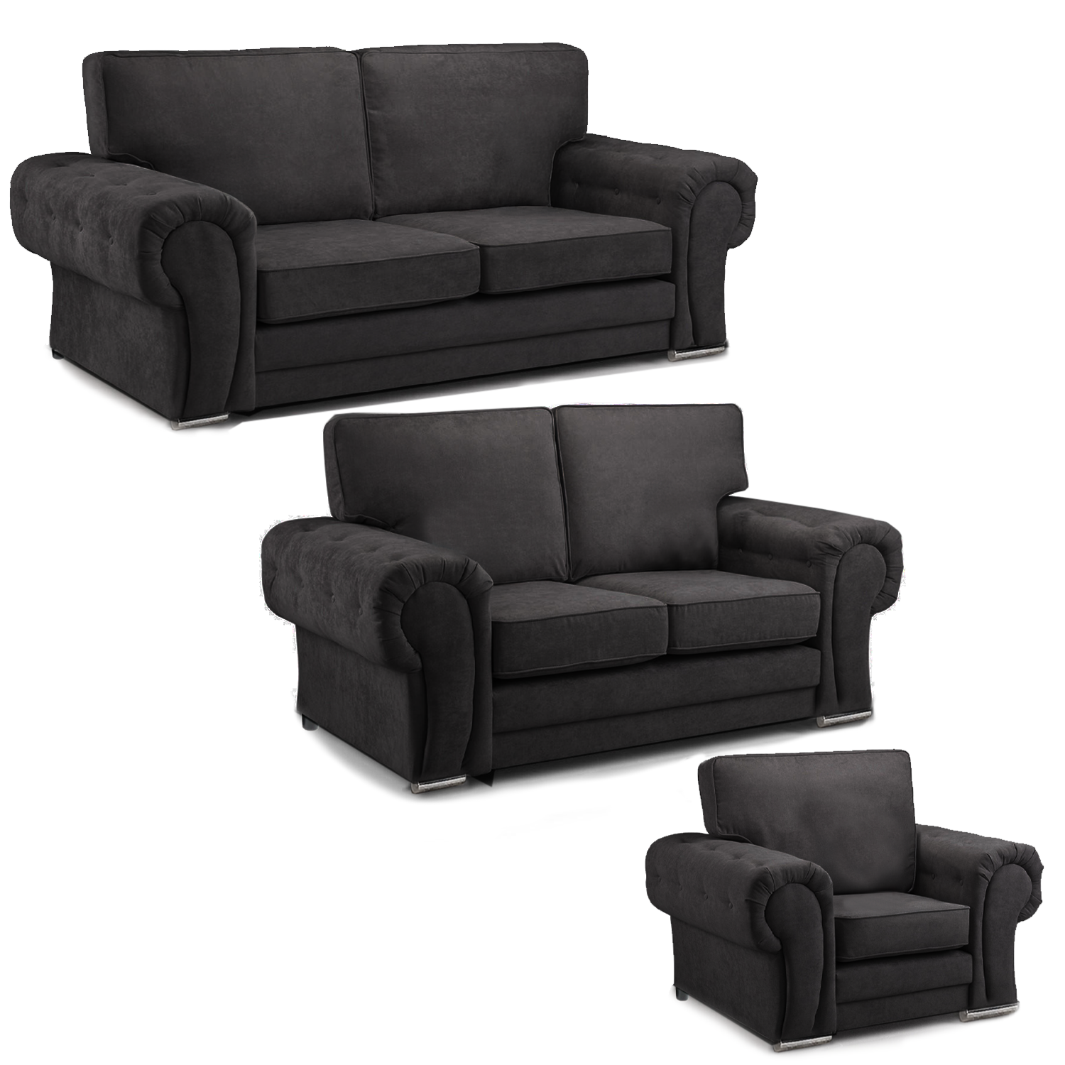 Milan Chesterfield Fabric 3 Piece Sofa Suite - Full Back