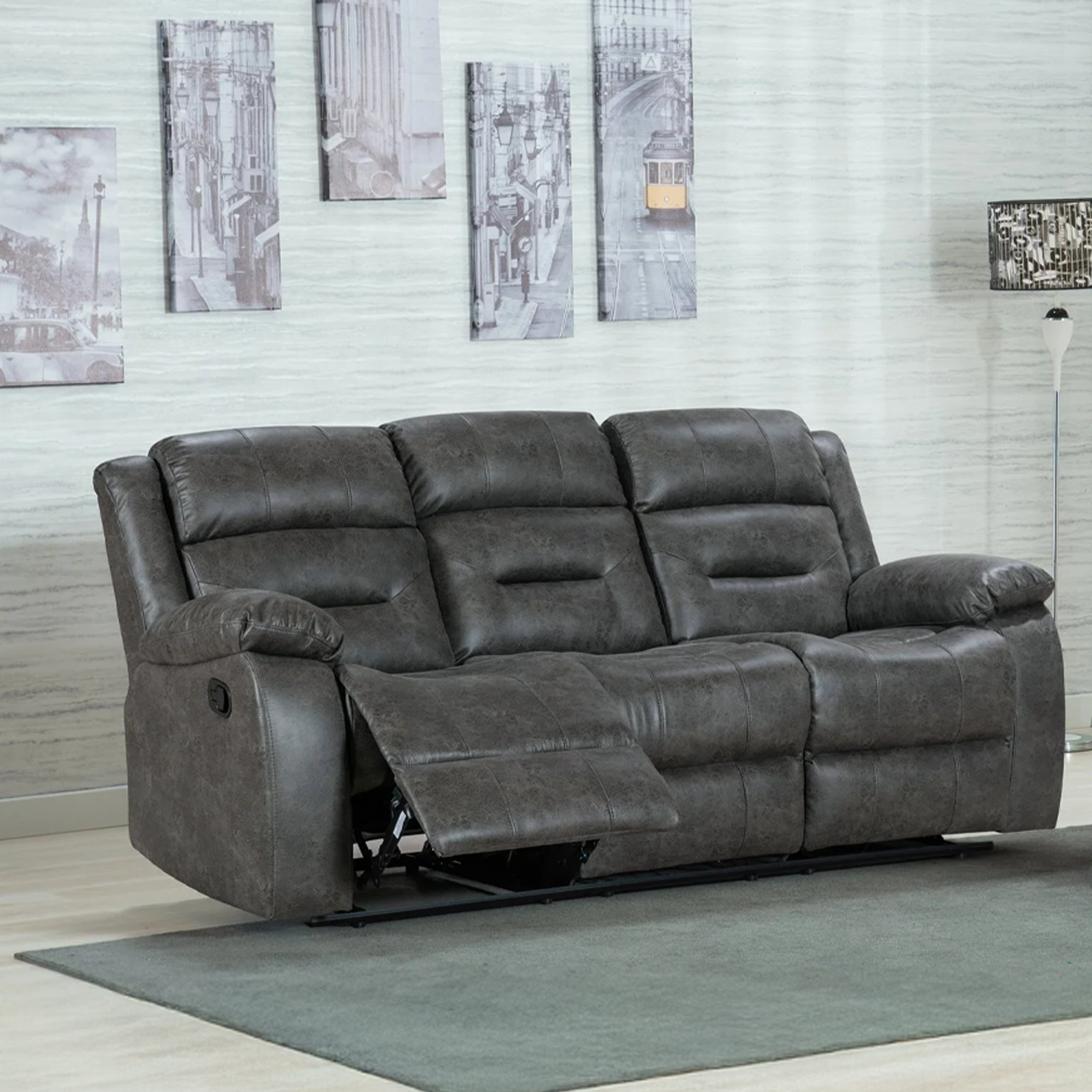 Full grey Technology fabric reclining sofa suite includes 3 and 2 seater. It’s upholstered in a thick fabric. The design is made for comfort. It includes luxuriously padded arms and a manual 3-positioning recliner function. The seat fillings are UKFR foam and also includes a sprung seat for longer-lasting comfort. Includes 12 months manufacturing warranty, Assembly is required