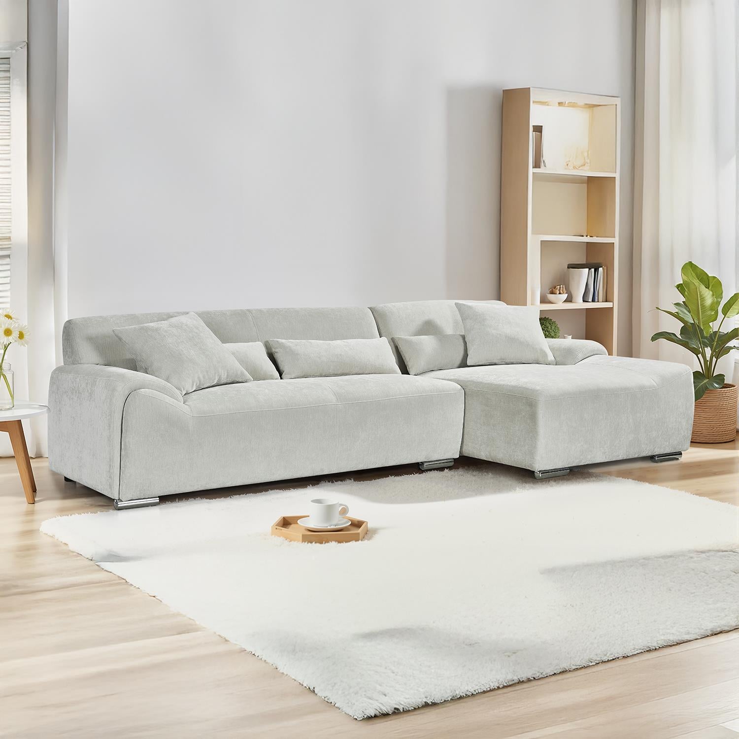 Monza L Shaped Chenille Fabric Beige Grey 4 Seater Corner Sofa RH