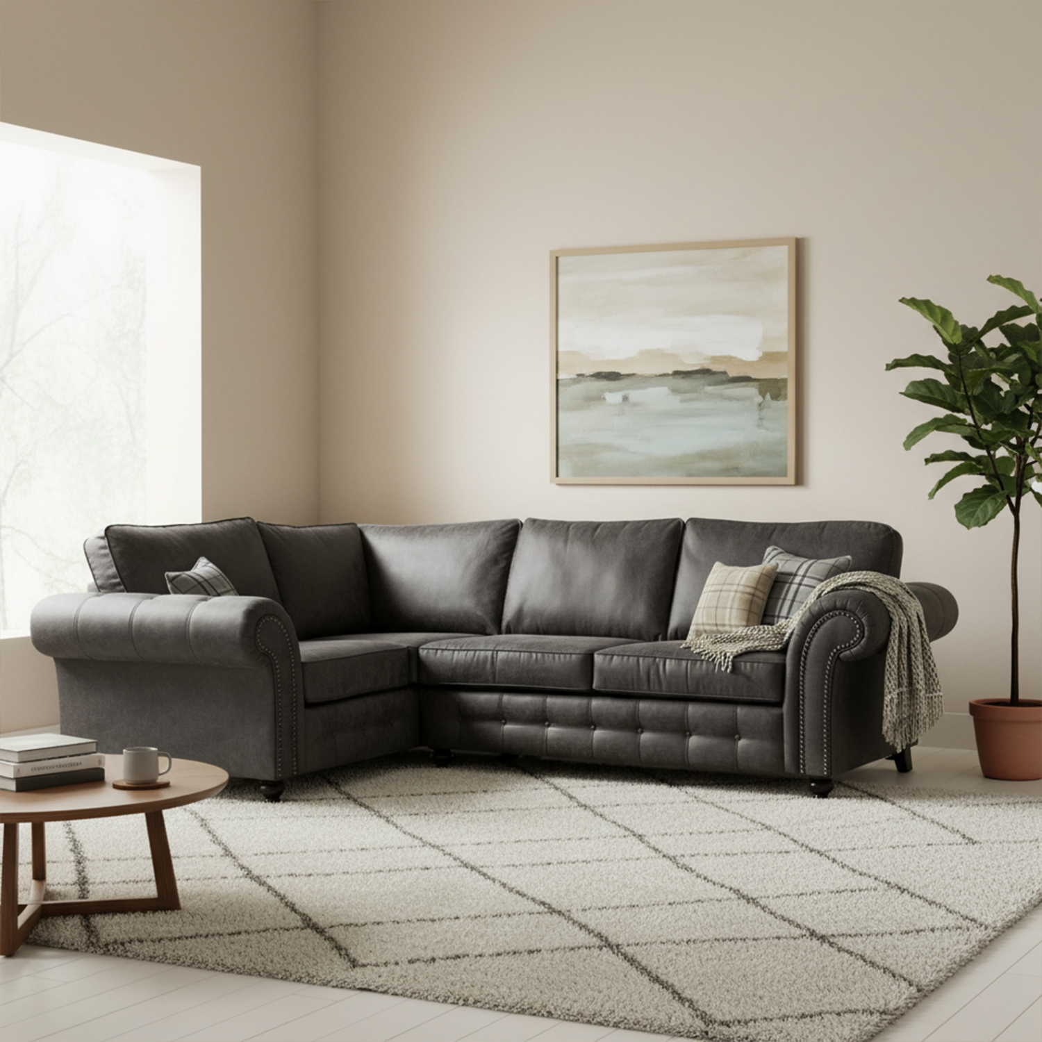 Oakland 4 Seater Leather Corner Sofa Chesterfield Style