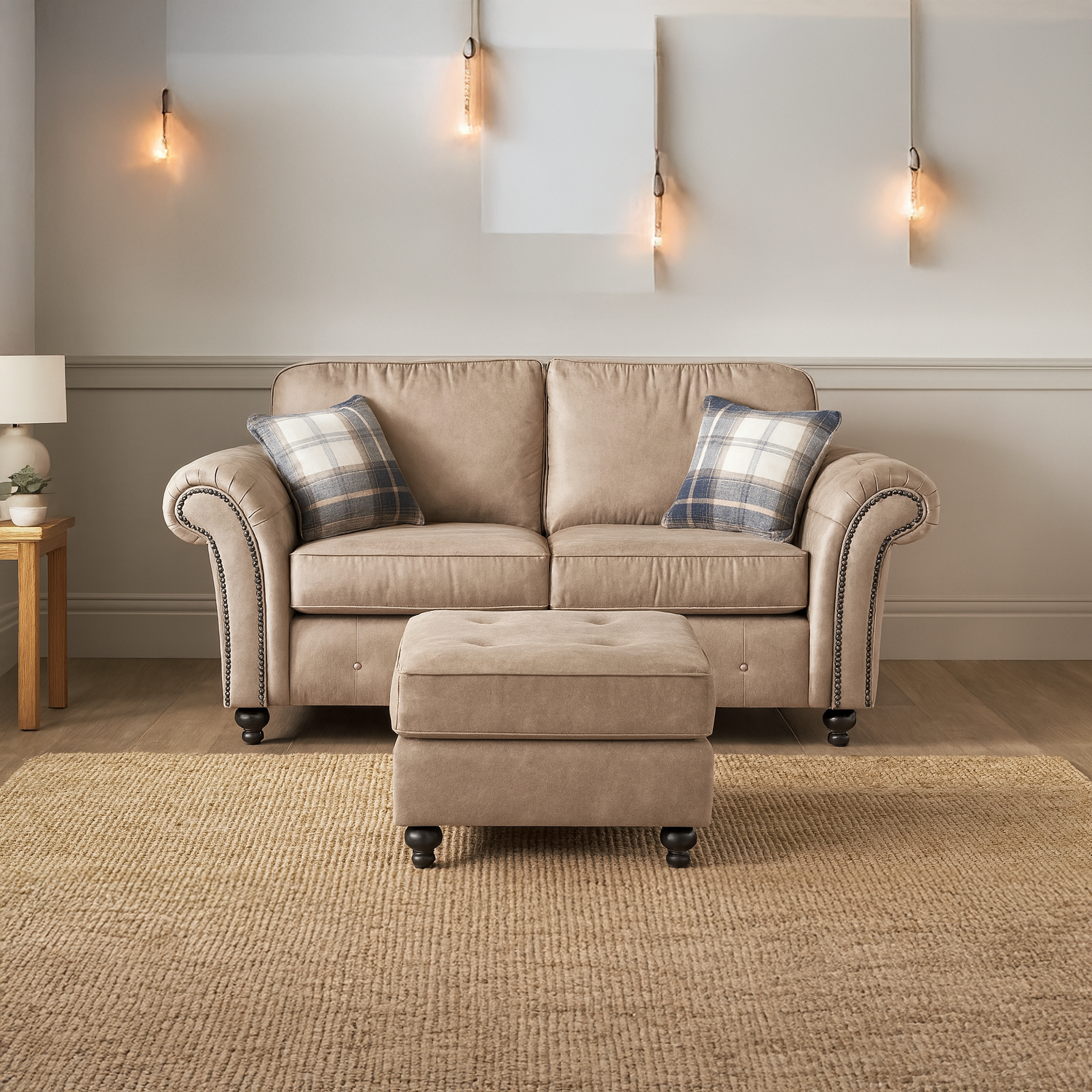 The Oakland range is a unique design. Its colours are either marble, tan or Charcoal Black (very close to black), both brimming with design to complement your room of choice. It’s upholstered in a leather-like fabric. It's a great design for an incredible price!