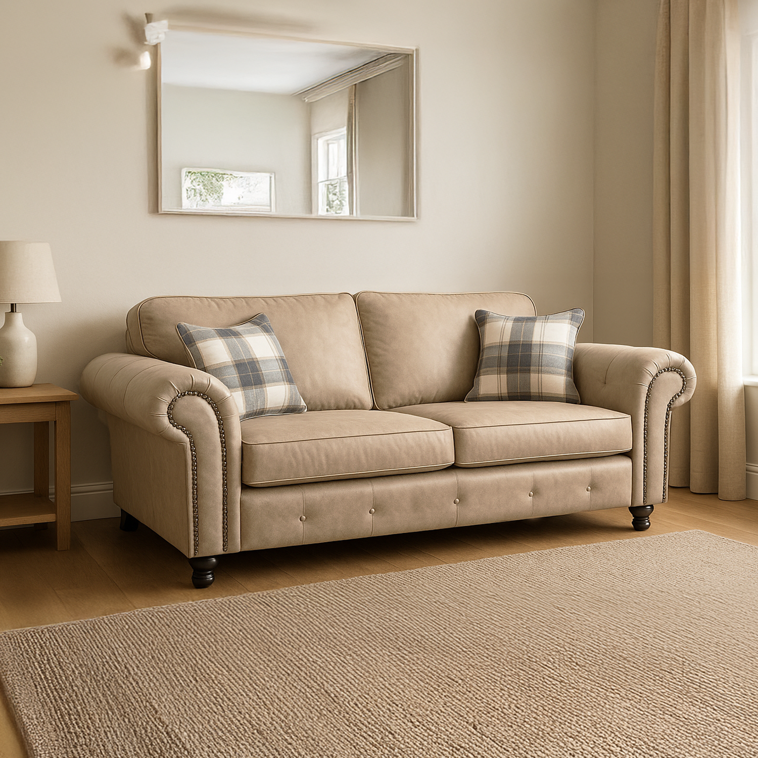 The Oakland range is a unique design. Its colours are either marble, tan or Charcoal Black (very close to black), both brimming with design to complement your room of choice. It’s upholstered in a leather-like fabric. It's a great design for an incredible price!