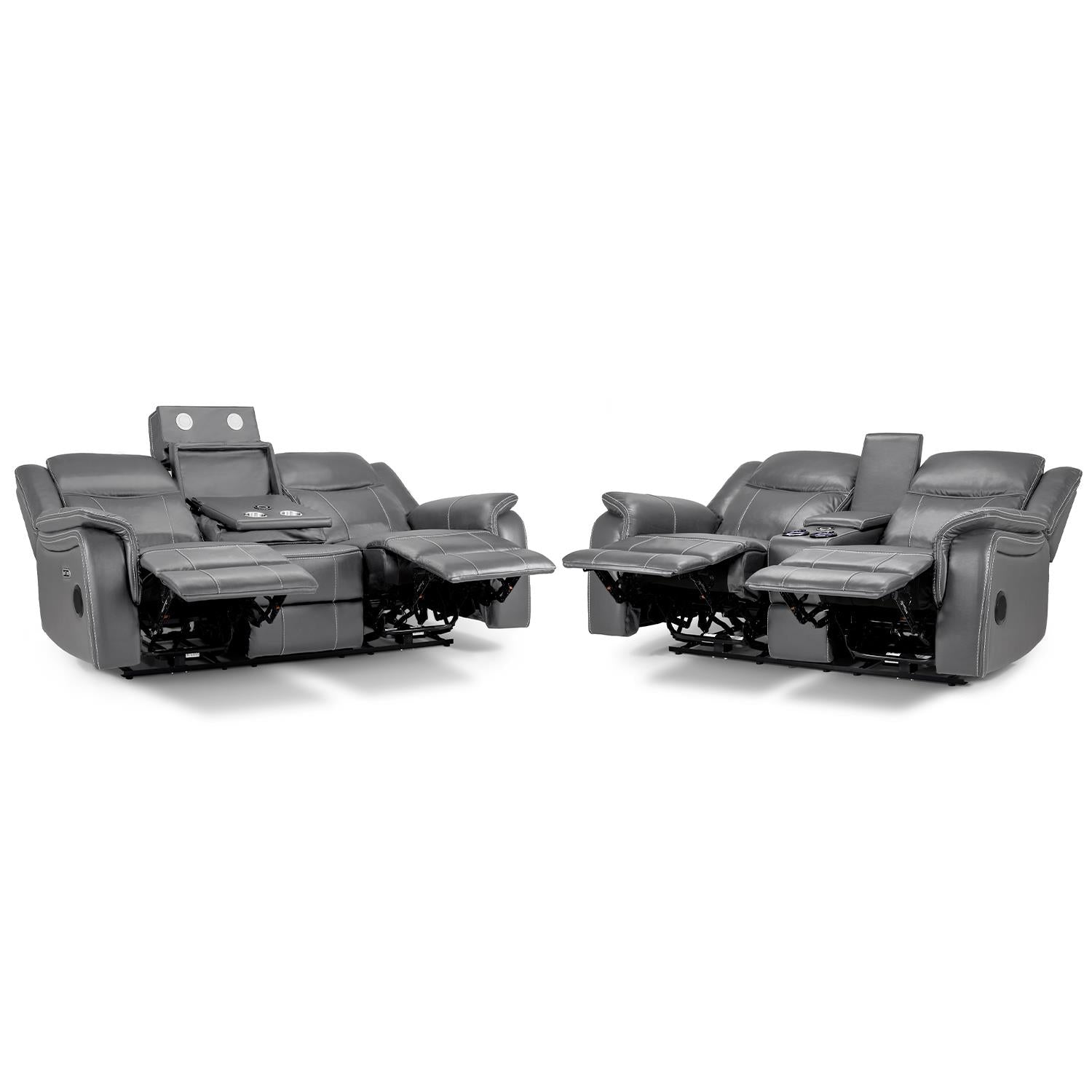 Power Recline with Clear Functionality – Smooth electric recline on both sofas; on the 3 seater, the two end seats recline while the middle seat remains fixed.