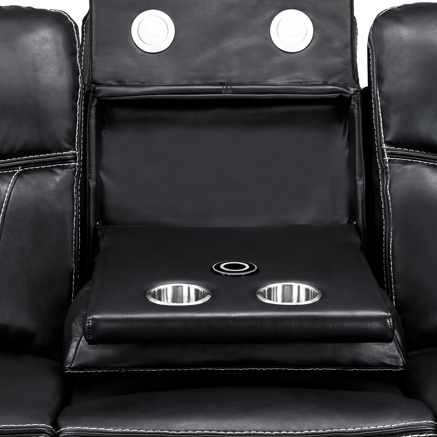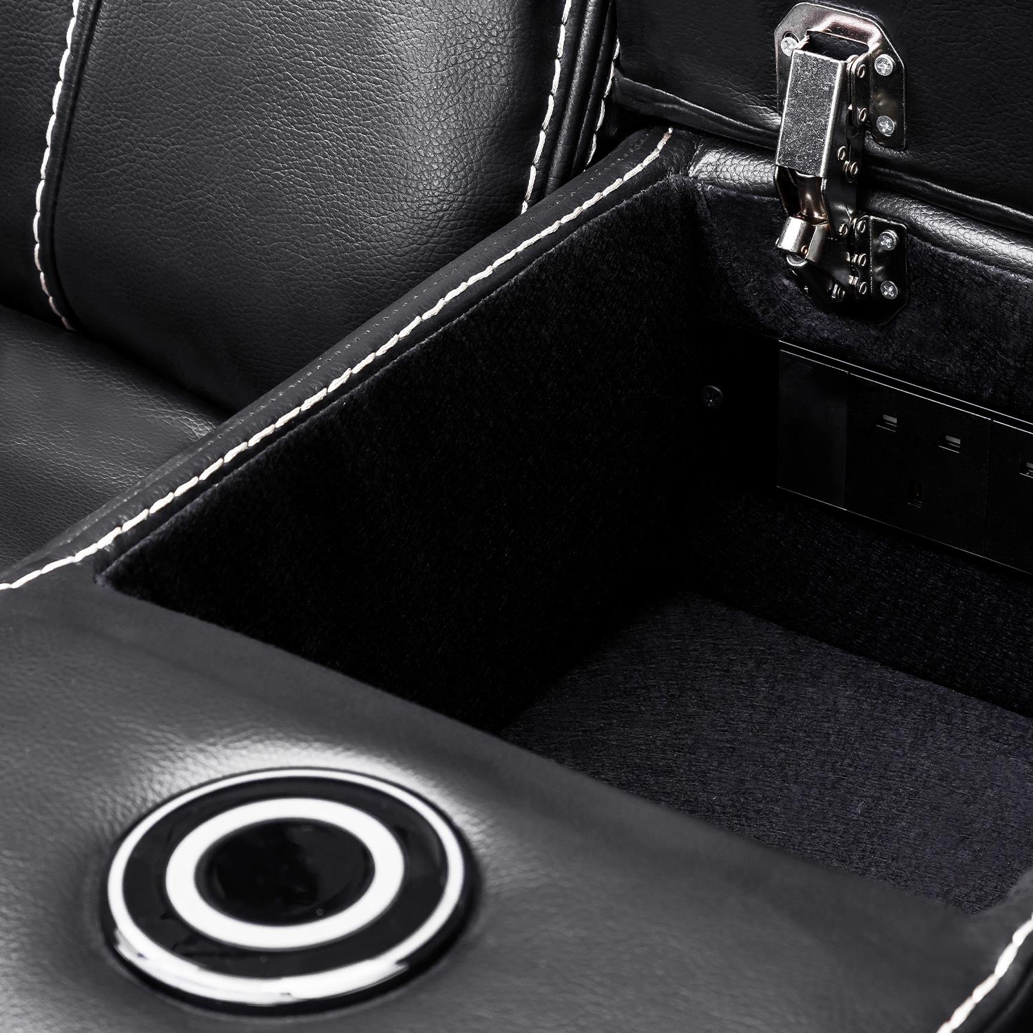 Smart Built-In Features – 2 seater includes a centre console with 2 cup holders, USB charging ports, and storage; armchair includes USB charging ports.