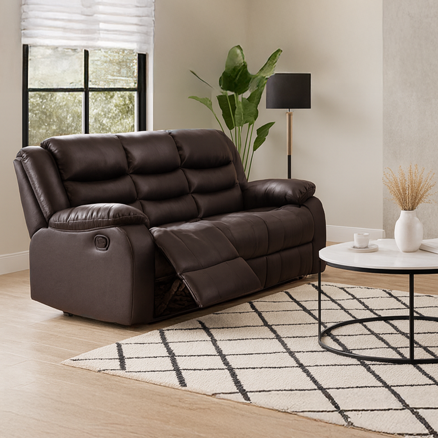 Upgrade your living room with the Leather Aire Recliner Sofa, combining comfort, durability, and unbeatable value. This stylish set includes a 3 seater sofa, making it the perfect choice for families or those who love to relax in style.