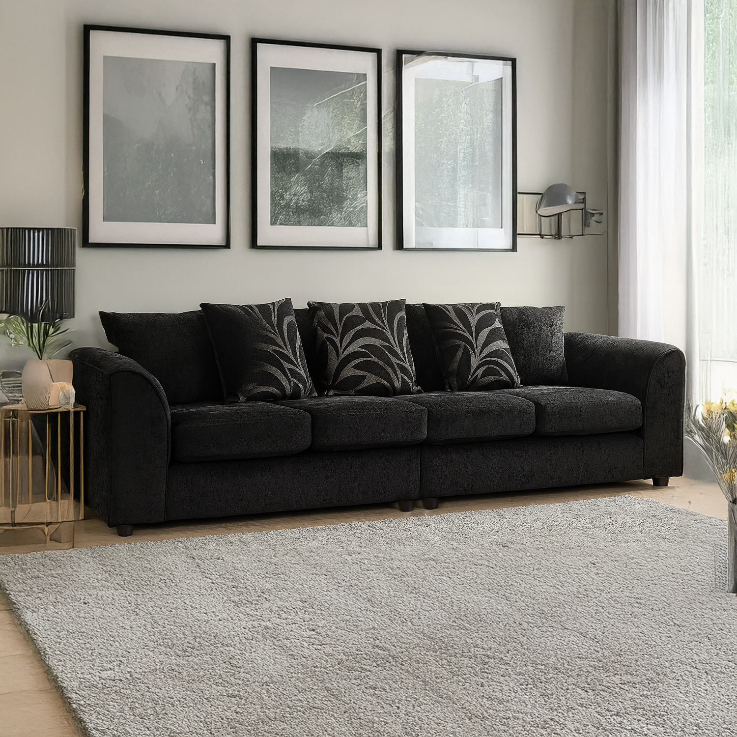 Zina Chenille Fabric Long 4 Seater - Scatter back