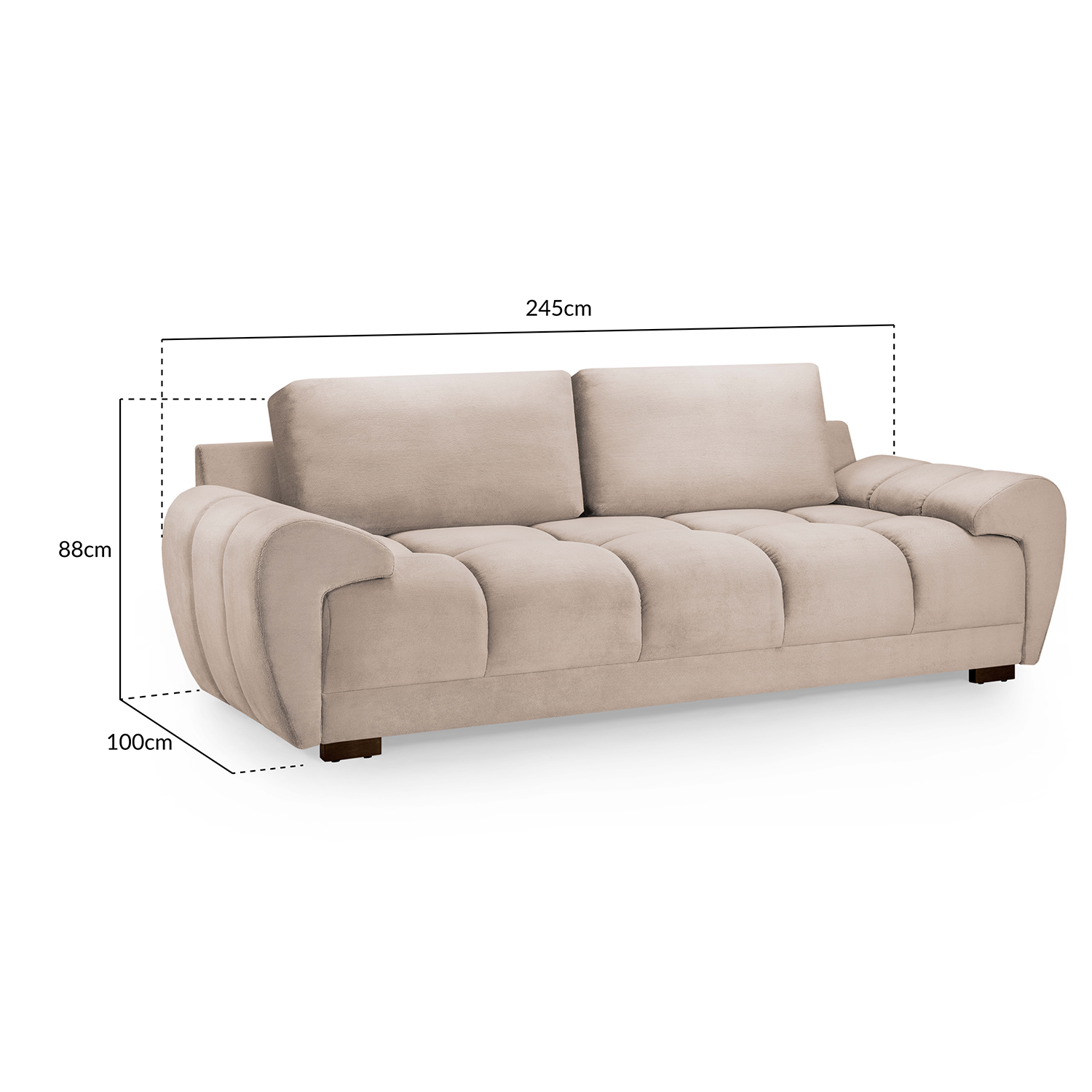 Designed with deep channel-tufted seating, the Zura offers excellent comfort and support, while the smooth curved armrests enhance both relaxation and visual appeal. With an impressive 245cm width, this spacious sofa provides plenty of room for lounging, entertaining, or simply stretching out in comfort.